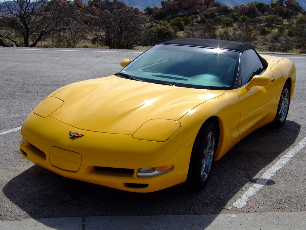 Description: 2001 C5 Convertible - Millenium Yellow parked at a rest area in Arizona along I-10