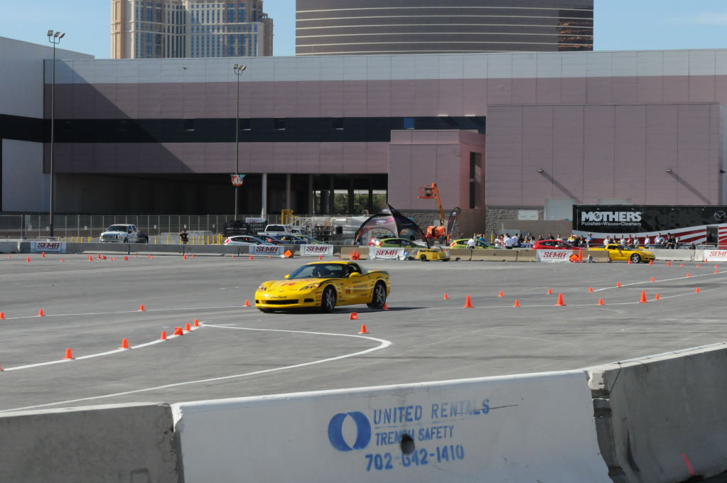 Description: Bob Bondurant instructors take SEMA participants around SEMA MotorTrend Proving Ground in C6 Corvettes Photos from SEMA Convention 2009
