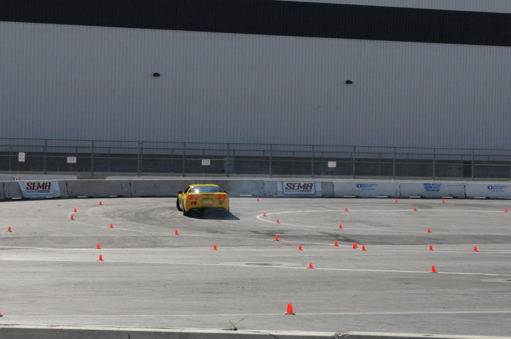 Description: Bob Bondurant instructors take SEMA participants around SEMA MotorTrend Proving Ground in C6 Corvettes Photos from SEMA Convention 2009