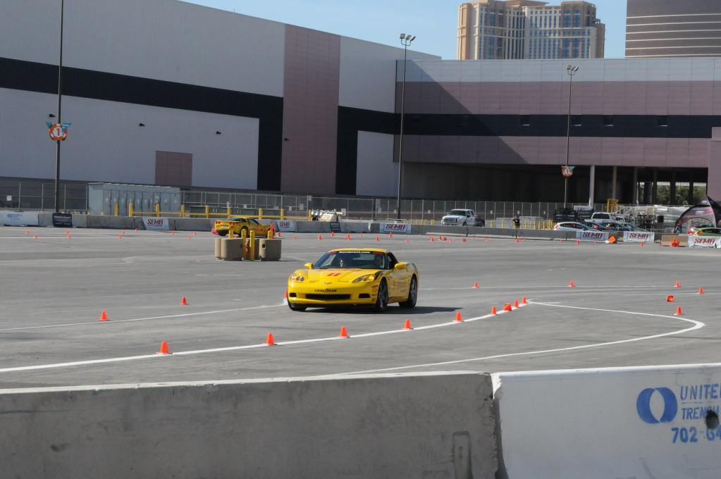 Description: Bob Bondurant instructors take SEMA participants around SEMA MotorTrend Proving Ground in C6 Corvettes Photos from SEMA Convention 2009