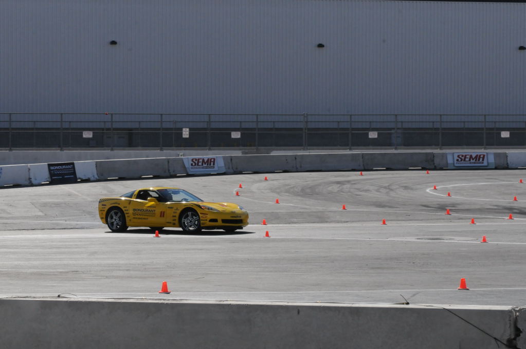 Description: Bob Bondurant instructors take SEMA participants around SEMA MotorTrend Proving Ground in C6 Corvettes Photos from SEMA Convention 2009