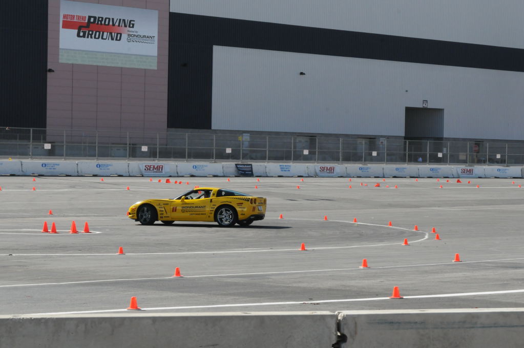 Description: Bob Bondurant instructors take SEMA participants around SEMA MotorTrend Proving Ground in C6 Corvettes Photos from SEMA Convention 2009