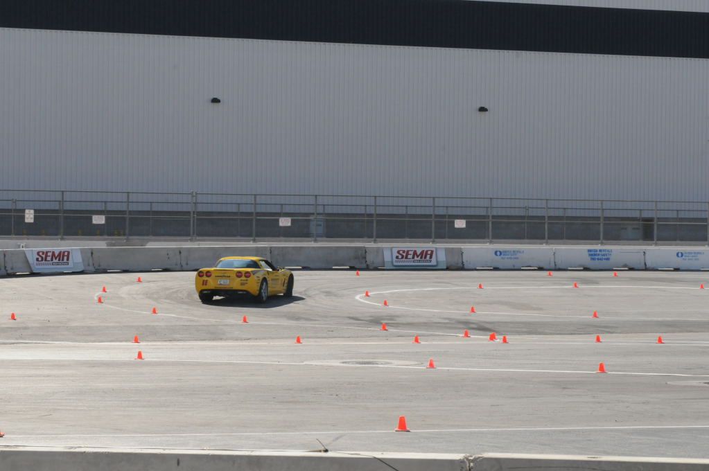 Description: Bob Bondurant instructors take SEMA participants around SEMA MotorTrend Proving Ground in C6 Corvettes Photos from SEMA Convention 2009