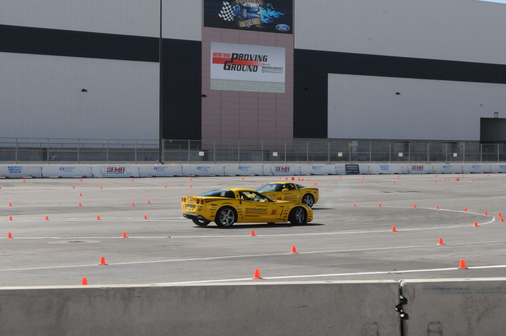 Description: Bob Bondurant instructors take SEMA participants around SEMA MotorTrend Proving Ground in C6 Corvettes Photos from SEMA Convention 2009