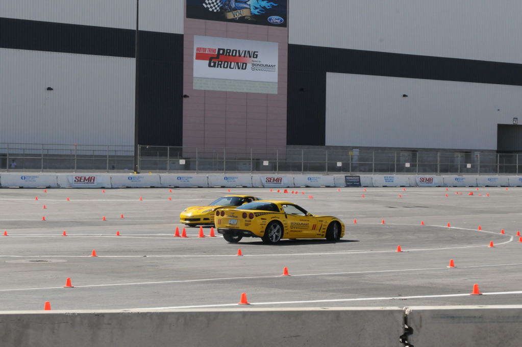 Description: Bob Bondurant instructors take SEMA participants around SEMA MotorTrend Proving Ground in C6 Corvettes Photos from SEMA Convention 2009