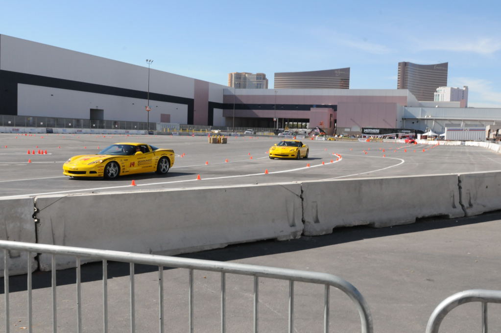 Description: Bob Bondurant instructors take SEMA participants around SEMA MotorTrend Proving Ground in C6 Corvettes Photos from SEMA Convention 2009
