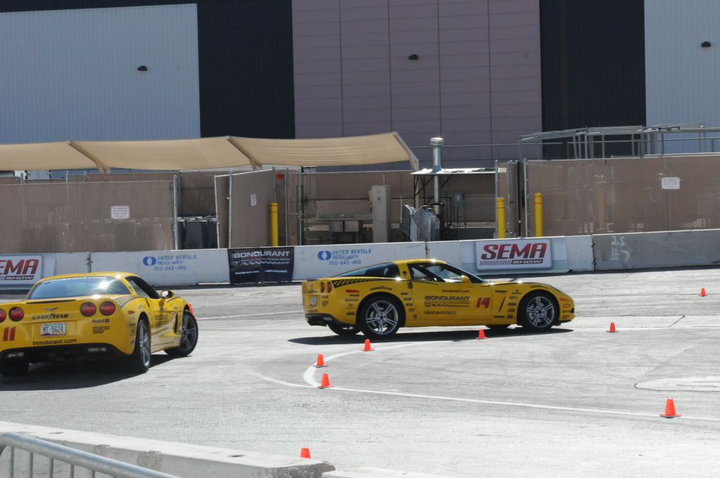 Description: Bob Bondurant instructors take SEMA participants around SEMA MotorTrend Proving Ground in C6 Corvettes Photos from SEMA Convention 2009