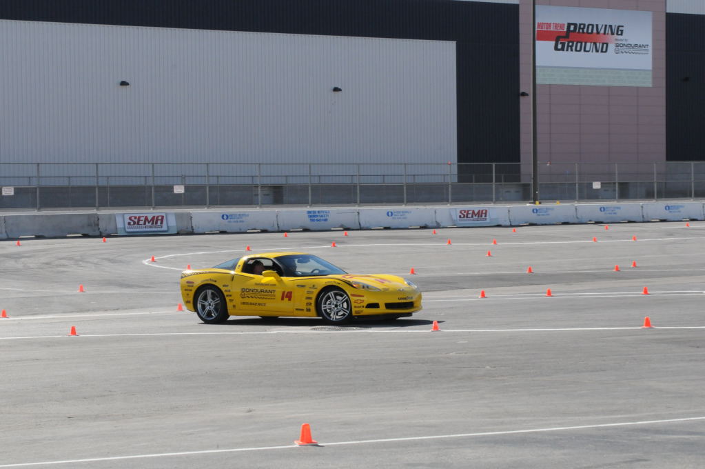 Description: Bob Bondurant instructors take SEMA participants around SEMA MotorTrend Proving Ground in C6 Corvettes Photos from SEMA Convention 2009