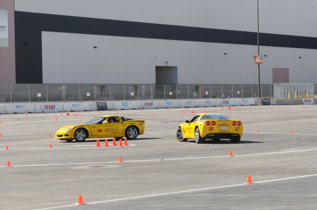 Description: Bob Bondurant instructors take SEMA participants around SEMA MotorTrend Proving Ground in C6 Corvettes Photos from SEMA Convention 2009