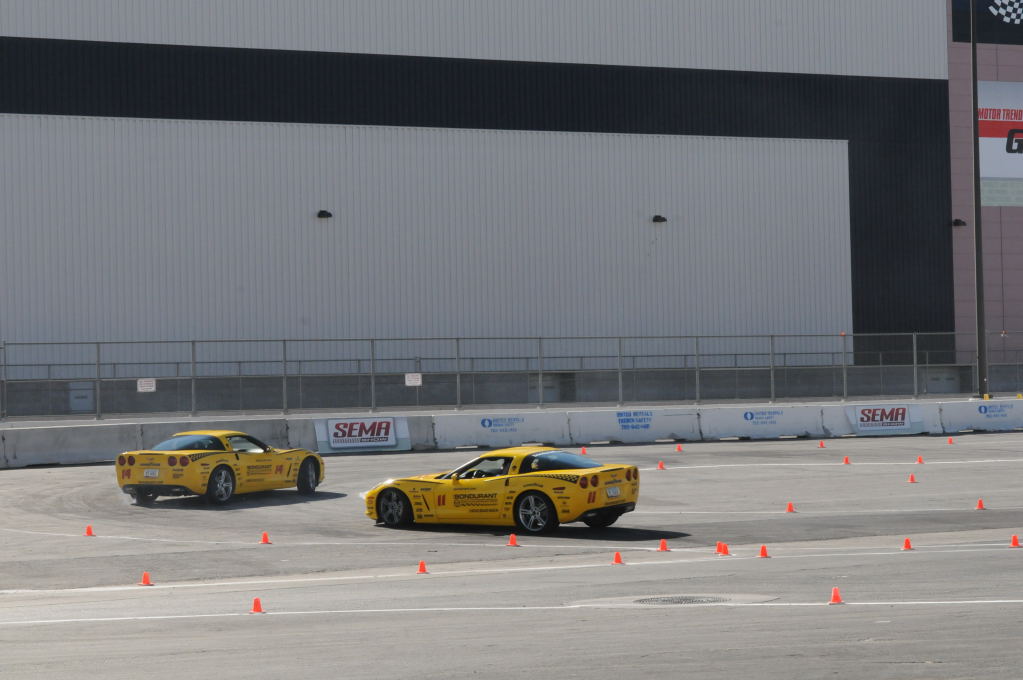 Description: Bob Bondurant instructors take SEMA participants around SEMA MotorTrend Proving Ground in C6 Corvettes Photos from SEMA Convention 2009