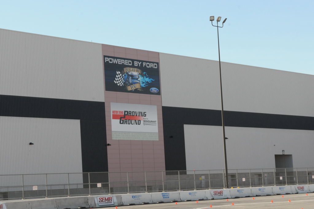 Description: Bob Bondurant instructors take SEMA participants around SEMA MotorTrend Proving Ground in C6 Corvettes Photos from SEMA Convention 2009