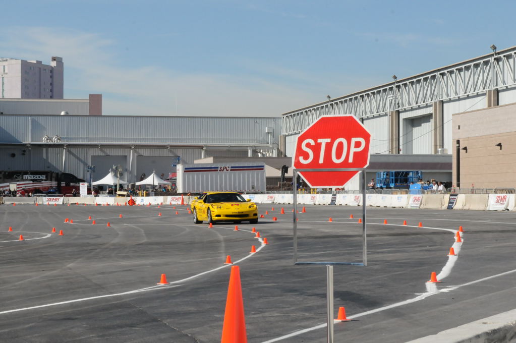 Description: Bob Bondurant instructors take SEMA participants around SEMA MotorTrend Proving Ground in C6 Corvettes Photos from SEMA Convention 2009