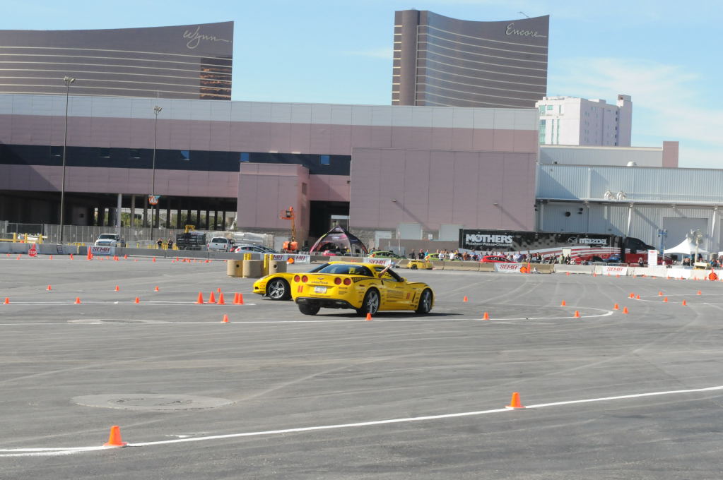 Description: Bob Bondurant instructors take SEMA participants around SEMA MotorTrend Proving Ground in C6 Corvettes Photos from SEMA Convention 2009
