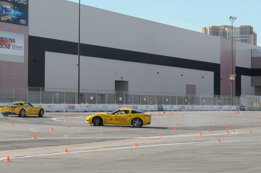 Description: Bob Bondurant instructors take SEMA participants around SEMA MotorTrend Proving Ground in C6 Corvettes Photos from SEMA Convention 2009