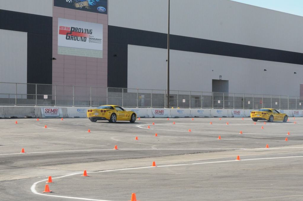 Description: Bob Bondurant instructors take SEMA participants around SEMA MotorTrend Proving Ground in C6 Corvettes Photos from SEMA Convention 2009