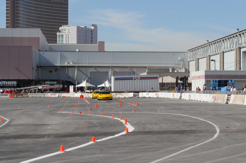 Description: Bob Bondurant instructors take SEMA participants around SEMA MotorTrend Proving Ground in C6 Corvettes Photos from SEMA Convention 2009