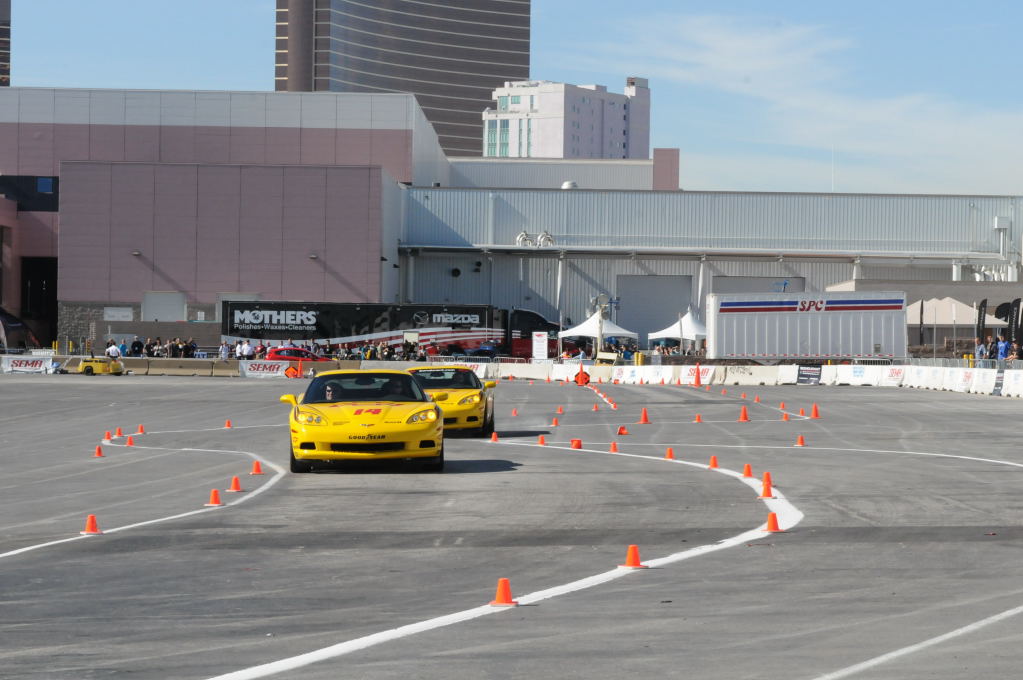 Description: Bob Bondurant instructors take SEMA participants around SEMA MotorTrend Proving Ground in C6 Corvettes Photos from SEMA Convention 2009