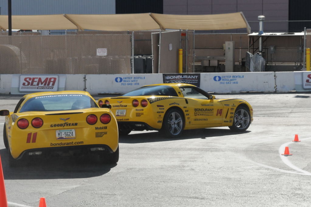 Description: Bob Bondurant instructors take SEMA participants around SEMA MotorTrend Proving Ground in C6 Corvettes Photos from SEMA Convention 2009