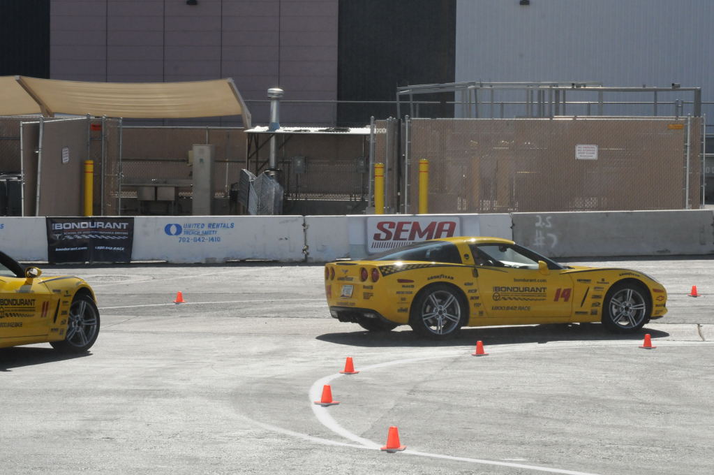 Description: Bob Bondurant instructors take SEMA participants around SEMA MotorTrend Proving Ground in C6 Corvettes Photos from SEMA Convention 2009