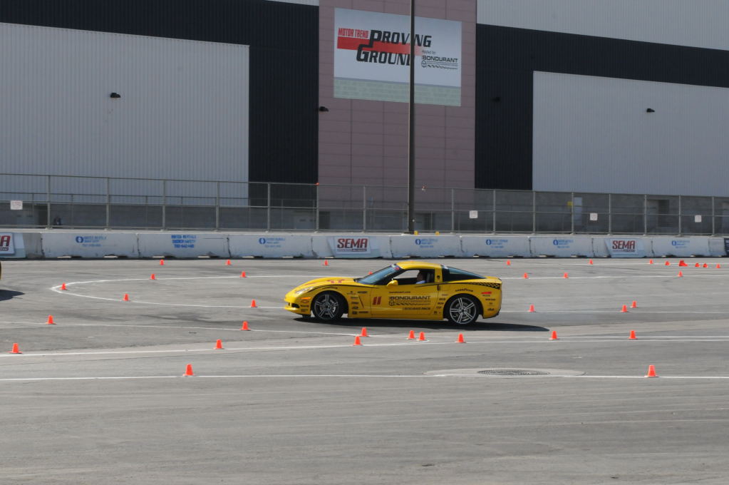 Description: Bob Bondurant instructors take SEMA participants around SEMA MotorTrend Proving Ground in C6 Corvettes Photos from SEMA Convention 2009