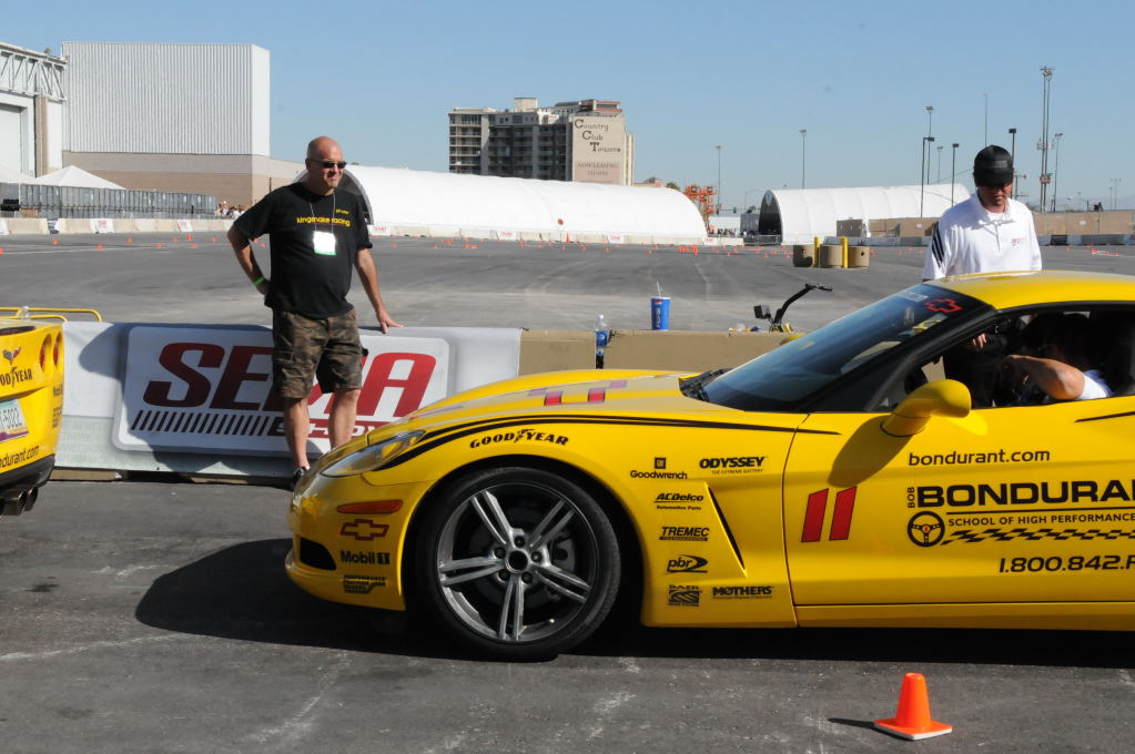 Description: Bob Bondurant instructors take SEMA participants around SEMA MotorTrend Proving Ground in C6 Corvettes Photos from SEMA Convention 2009