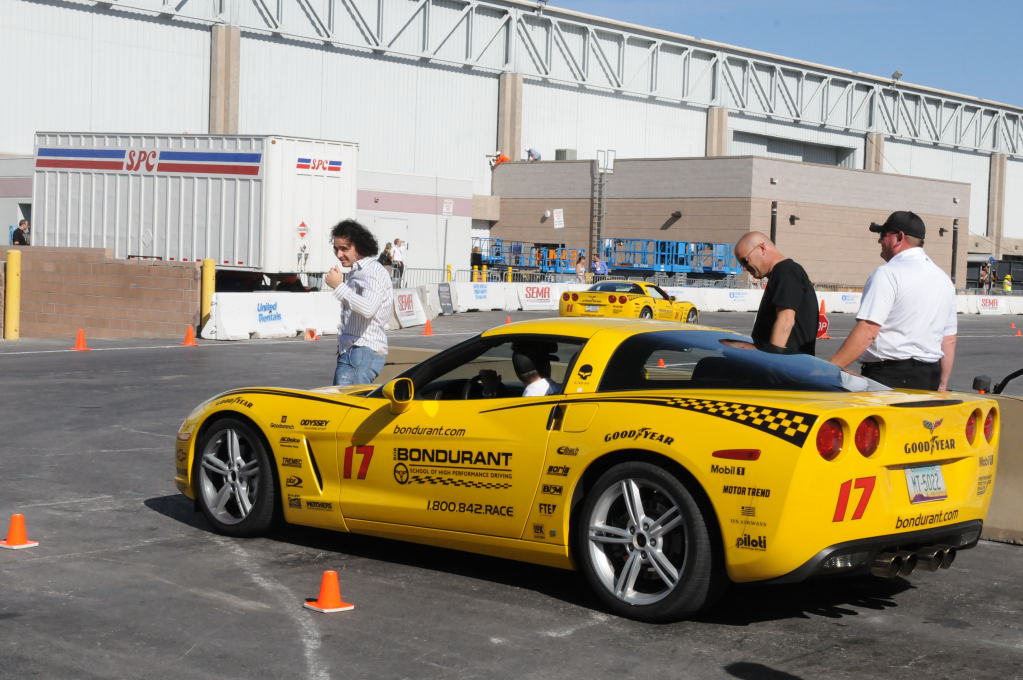 Description: Bob Bondurant instructors take SEMA participants around SEMA MotorTrend Proving Ground in C6 Corvettes Photos from SEMA Convention 2009