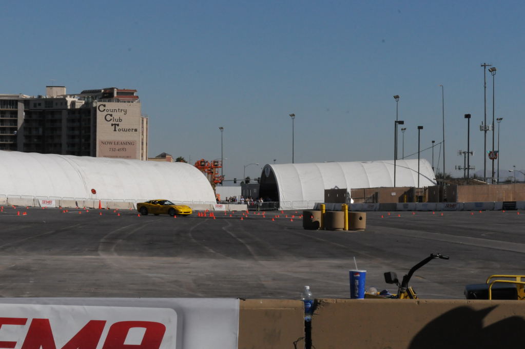 Description: Bob Bondurant instructors take SEMA participants around SEMA MotorTrend Proving Ground in C6 Corvettes Photos from SEMA Convention 2009